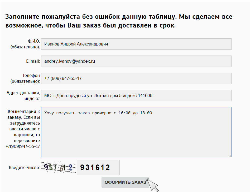 4.При оформлении заказа очень важно правильно и в полном объеме указать персональную информацию о заказчике, контактные данные и адрес доставки. Если Вы заказываете доставку почтой, то Вам обязательно следует указать индекс. Если вдруг вы не видите код проверочный картинки, то вы можете ее поменять, нажав на саму картинку.